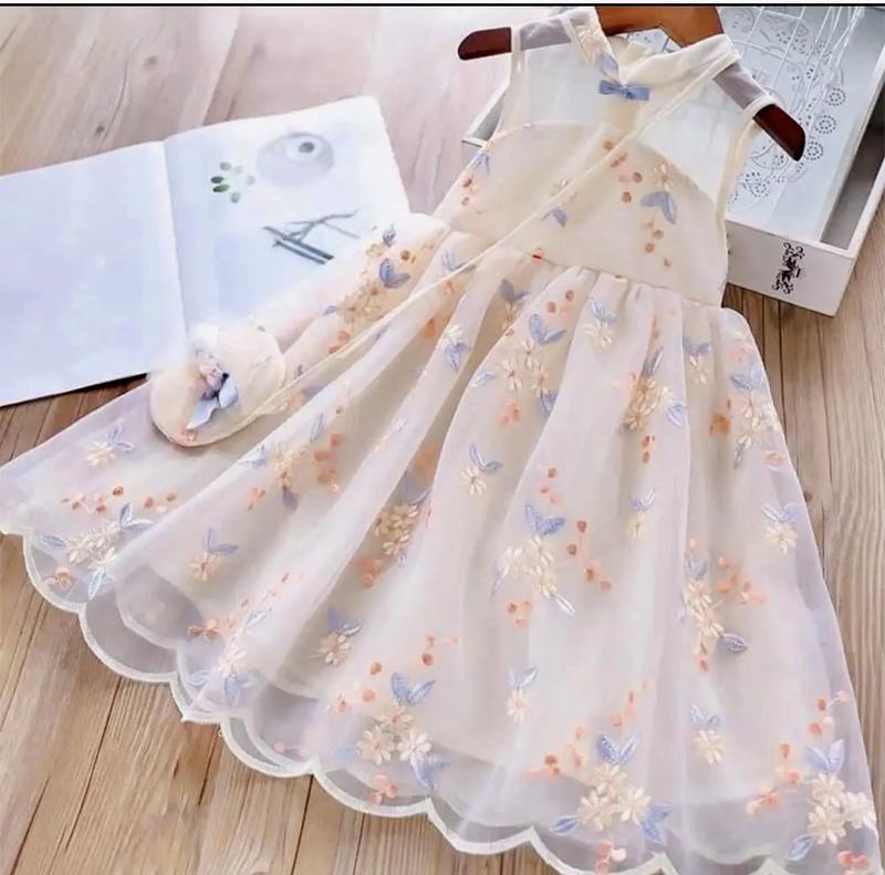 (бантик рожевого кольору). Фатин + подкладочка. Цвет Шампань, на молнии, сверху сетка, цветы вышивка. 🦄Размеры: 100: Длина 55, пог 27 см. 110: Длина 57, пог 28 см. 120: Длина 64, пог 30 см. 130: Длина 68, пог 32 см. 140: Длина 74, пог 34 см. Ориентация на замеры, допускается погрешность в 1-1,5 см.