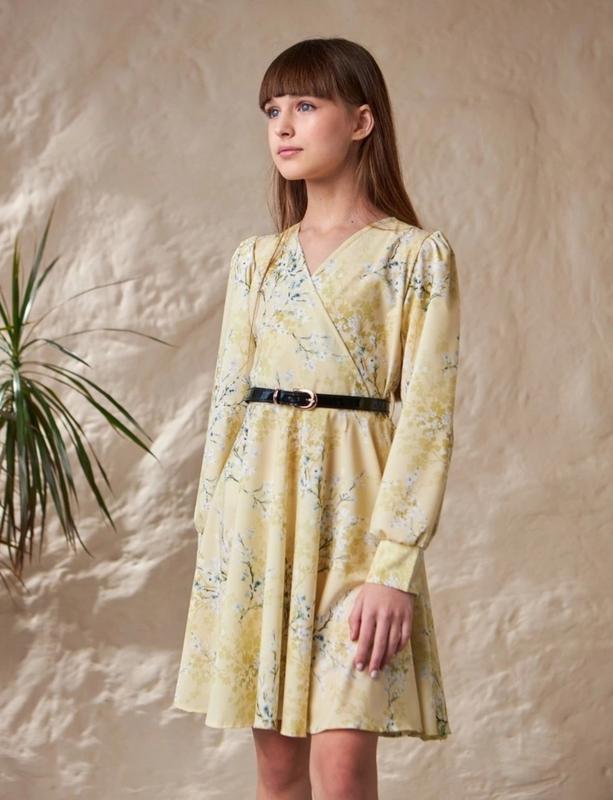 Стильное платье для девочек свободного кроя + поясок в комплекте Тканая : софт длин/рукав/п*********** 146р-77/52/36 158р-82/55/38