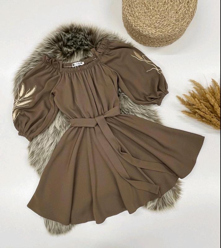 Платье "Эмилли" в комплекте с поясом и трендовыми колостями вышитыми по рукавам Настоящая вышивка Ткань-креп диагональ (Барби) Супер качество Цена 1035 грн рост/длина от плеча/пог/рукав полная длина похибка+-2см 158-164/86/44/45-2шт 164-170/90/46/47-3шт Детская одежда