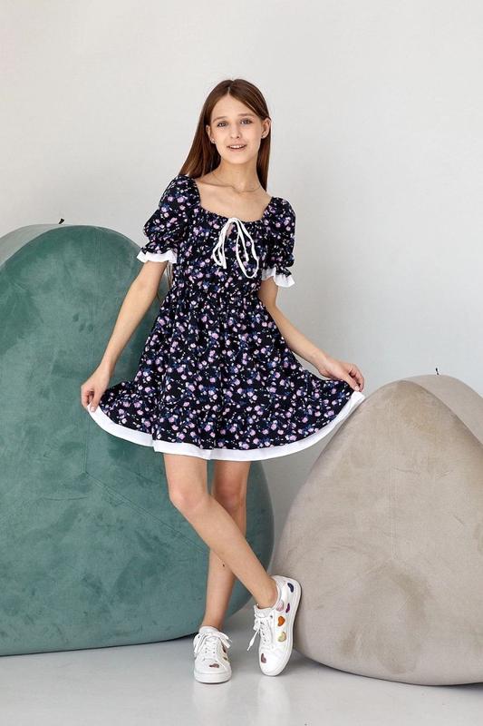 Трендовое летнее платье 🥰🥰🥰 🔝🔝🔝Цветочная, воздушная, стильная 🤩🤩🤩 Объемные рукава, на резиночке💕 Спереди вырез регулируется кулисками 👌🏻 В поясе резиночка😌 Тканина: софт 💗 Производитель: Украина 🇺🇦 ЗАМІРИ ⤵ +/- 1-2см!!! р.134- длина платья 68см/ рукав 26см/ ПОГ 30см р.140- длина платья 69см/ рукав 29см/ ПОГ 31см р.146- длина платья 70см/ рукав 29см/ ПОГ 31см р.152- длина платья 73см/ рукав 31см/ ПОГ 33см р.158- длина платья 77см/ рукав 31см/ ПОГ 34см