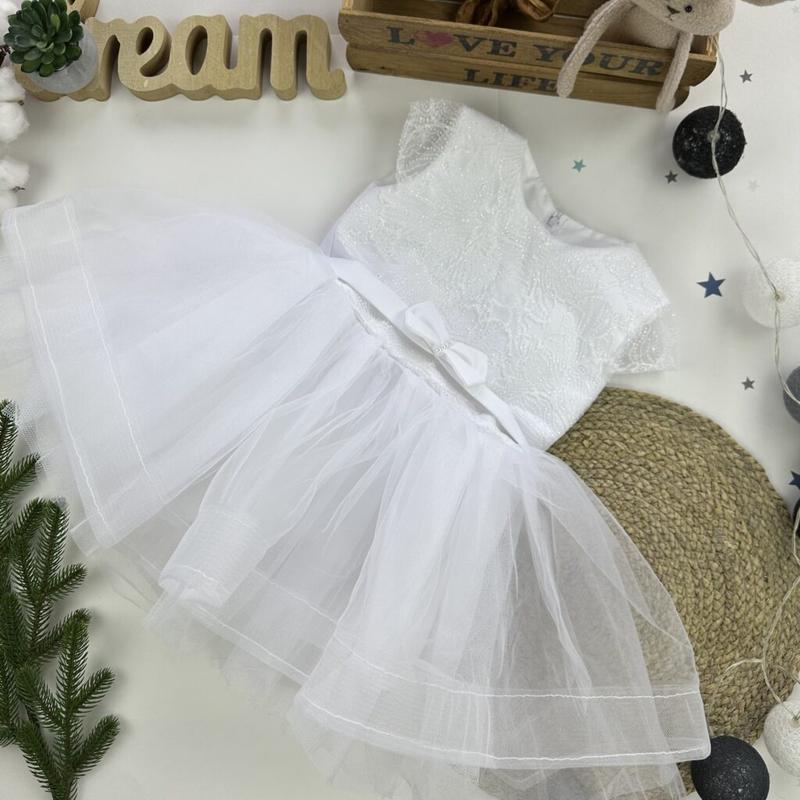 Платье пышное производство Украина. Верх- кружево, низ- несколькослойный фатин. Сзади- на молнии, дополнительно- шнуровка. Размер: визуально 2-3 года. Длина 51см, полуобхват 29 см. Цена: 695 грн