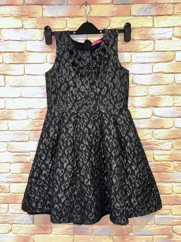Нарядное и элегантное черно-серебряное платье на подкладке, декорированное черными камушками. Размер: 152 Возраст: 11/12