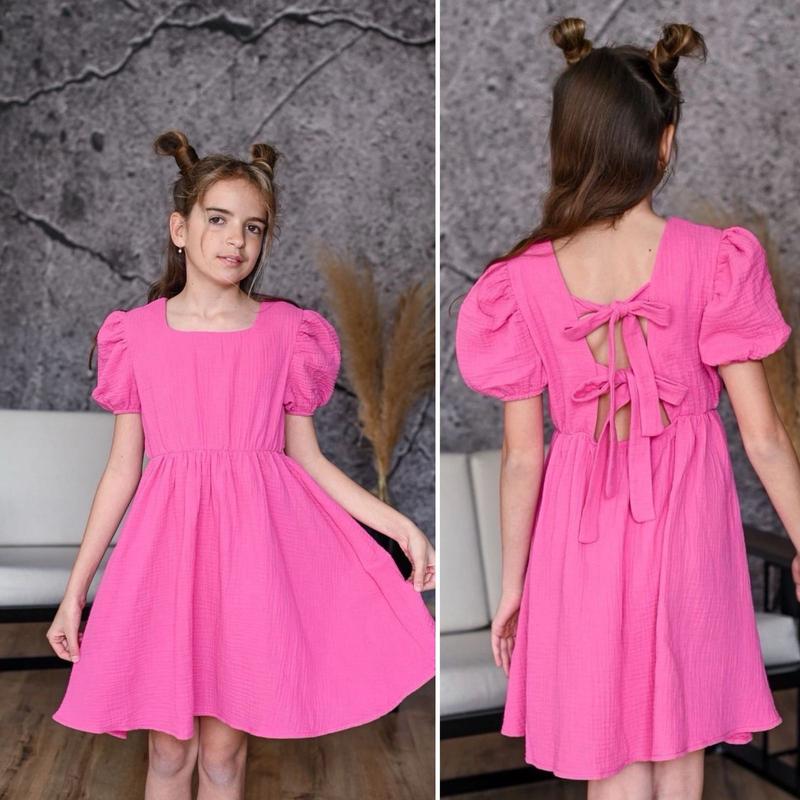 Нежное платье для девочки Очень красивая и стильная ткань муслин ззаду на бантиках в талии под резинку КАЧЕСТВО ЧУДОВА!! РЕКОМЕНДУЮ!!! Цена 650 грн длина/пог 128р-67/36 134р-70/37 140р-72/39 146р-74/40 152р-77/42
