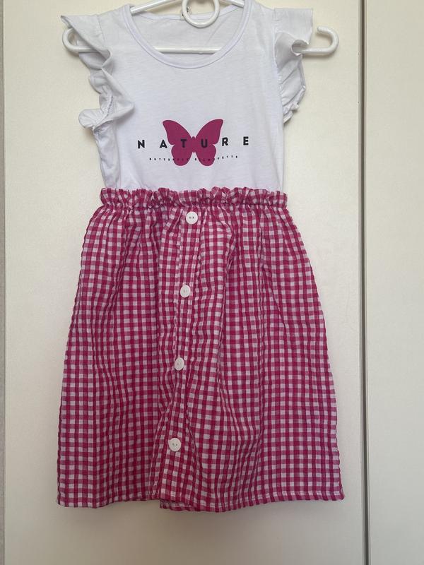 Платье для девочки 5-6 лет, статус отличный, отсутствие.Юбка легкая, выдвижная.Довжина платья 60см.