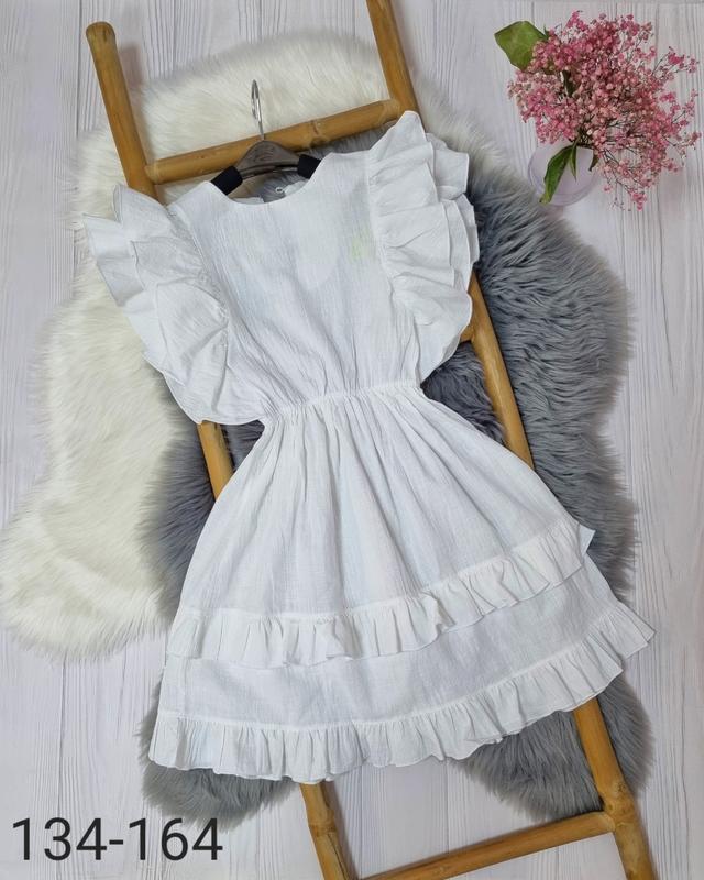 НОВИНОЧКА Красивое и яркое платье выполненное из 100% натуральной ткани лен в поясе на резинке может быть как повседневной так и на свято очень красиво смотрится на ребенке сзади застегивается на пуговицу РЕКОМЕНДУЮ! 📍134-длина 74,пог 33 +-2 см