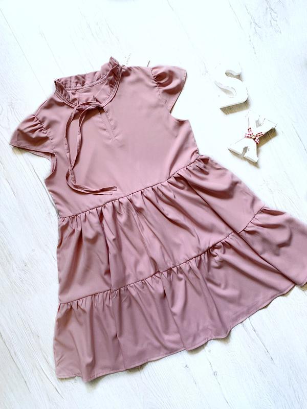 Сукня для дівчинки Легка, приємні до тіла Тканина софт В наявності пудра 146 р Доставка Нова пошта і Укрпошта
