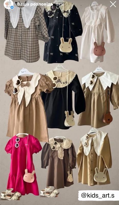 Новые платья в ассортименте и размерах на возраст 1.2,3,4,5,6,7,8р. Натуральная ткань. Цены разные и начинаются от 500 грн( темное платье по центру)
