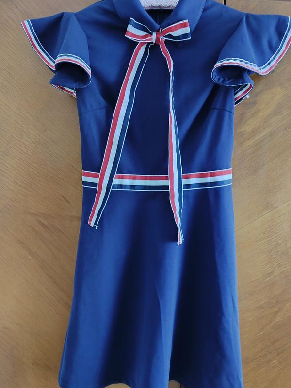 В идеальном состоянии очень красивое темно синее платье. Винтажный стиль. Красиво сшито, смотрится очень нарядно. На спинке замочек. Замеры пог 40см, пот 32см, длина 80см.