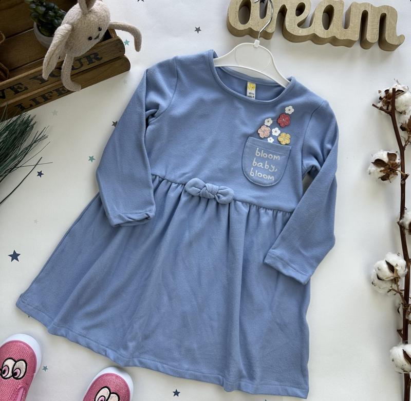 Теплое платье производства Турция. Качество- люкс. Высококачественный флис. Удобная и практичная. Кармашек- украшена надписью, цветы- нашиты. Размеры: 3 года – рукав от горловины 30/ длина 52 4 года – 35/56 5 лет – 38/62 6 лет – 40/63 Цена: 545 грн КрохпельКа