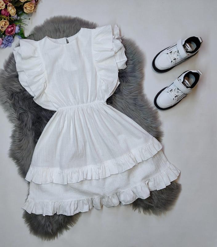 Нежное летнее платье для красавиц Ткань легенькая натуральная лен, приятная к телу, имеет тисненый дизайн, в поясе резинка 134р- длина 73, пог 33 140р- длина 77, пог 34 146р- длина 80, пог 34 152р- длина 84, пог 35 158р- длина 86, пог 36 164р- длина 87, пог 37 ⚠️Кнопку КУПИТЬ не жмите, до уточнения деталей 🚚Новая почта, есть наложка с предоплатой 🚛 Укрпочта- +5грн упаковка (укрпочтой наложка немає❗️) По оплате и доставке уточняйте дополнительно, до покупки! Возврата нет, делайте свой выбор обдуманно. Осматривайте товар в отделении, претензии из дома не рассматриваются! ток