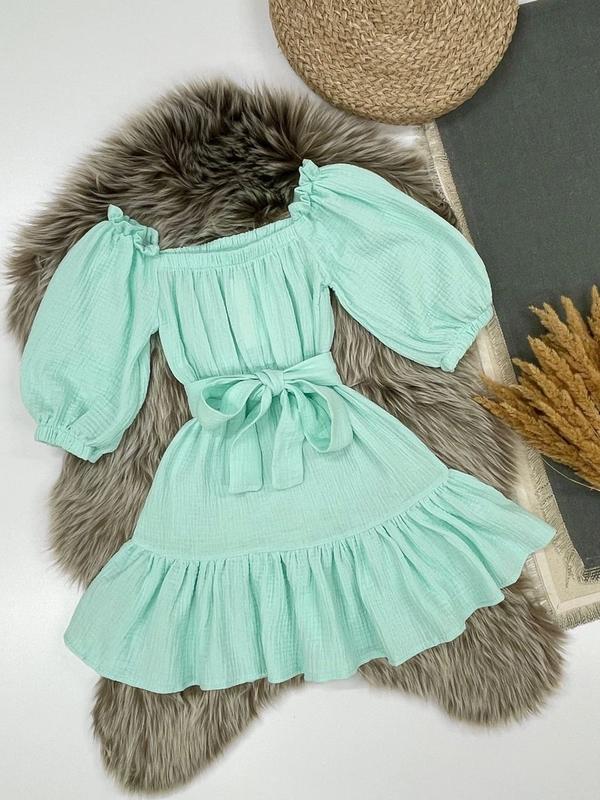 Нежное и легкое летнее платье ткань муслин в поясе на резинке поясок входить у комплект КАЧЕСТВО ЧУДОВА!! РЕКОМЕНДУЮ!!! Рост/Длина/пог/рукав Похибка +-2см 140/61/36/32-2шт 146/63/38/34-2шт 158/67/42/36-2шт