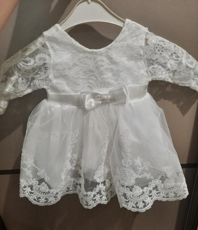 В набор входит платье,боди, пинетки, повязка оголова.Стан идеален Размер 0-6 месяцев Длина платья-41 см Длина рукава-21 см Длж.боди 38 Обхват голови 42 см Длина пинетки-9.5 см