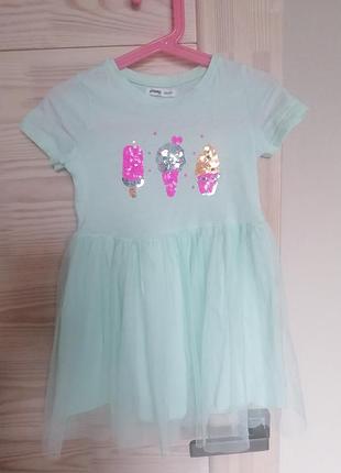 Гарне платтячко на літо м'ятного кольору р. 104, на дівчинку приблизно 4 років, орієнтуйтесь на заміри: Плечі 23 см ПОГ 29 см Довжина плаття 56 см