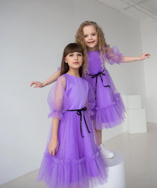 Сукня для принцес! Ткань - королевский атлас, евросетка. По спинке застегивается на молнию. Рукав короткий по локоть. цвет - ЛАВАНДА. 128 длина - 74см, полуобхват груди - 34см.