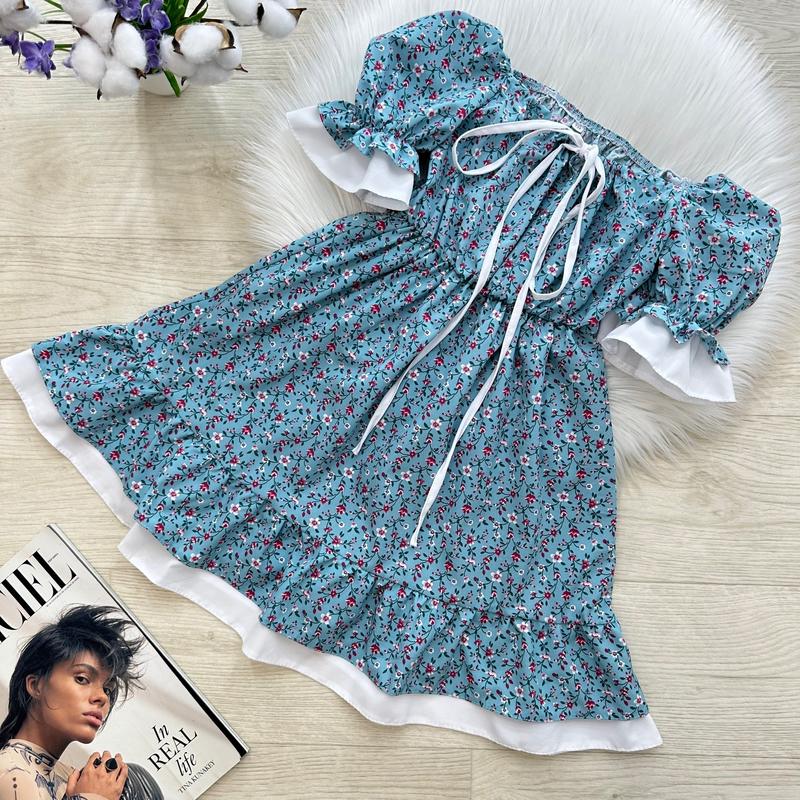 💝Трендовое летнее платье. Цветочная, воздушная, стильная 🪡Тканина: софт. Объемные рукава, на резиночке Спереди вырез регулируется кулискам. В поясе резиночка 📐ЗАМІРИ ⤵ +/- 1-2см!!! 134 - длина платья 68см/ рукав 26см/ ПОГ 30см 140 - длина платья 69см/ рукав 29см/ ПОГ 31см