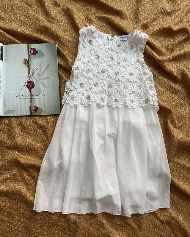 Красивое платье для девочки/ Белая с цветками/ Подойдет на 7-9 лет ориентируйтесь по замерам/ Длина 70-73 см/ Плечи 28 см/ Пог 38 см/ Пот 33 см/ Поб 50-53 см/ Знизу 55-67 см/ В составе коттон полиэстер/ Продается без возврата/