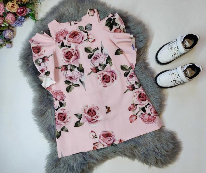 Очень красивое и нежное платье для девочки отлично подойдет на праздники и проклянки6 на спинке застегивается на молнию на плечах прикрашено рюшами тканина креп-костюмка замеры: длина/пог 134р-62/35 146р-70/38