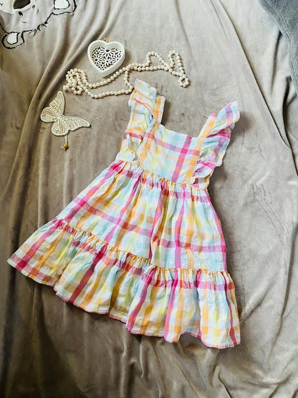 Стильное коттоновое платье F&F, ткань жатка, есть легкая подкладка. Стан идеален. Размер 104-110 (4-5 лет), но лучше всего ориентироваться на замеры. Длина по середине 51 см. ПОГ 28 см. Доп. фото и замеры по требованию.