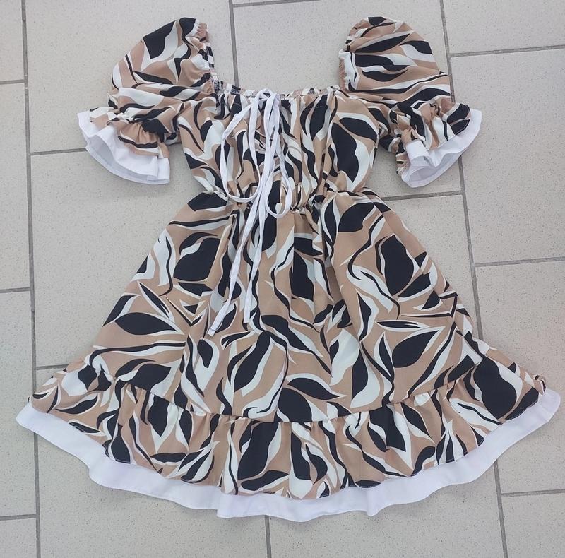 Трендова літня сукня Обʼємні рукава, на резиночці Попереду виріз регулюється,в поясі резиночка тканина софт заміри-довжина/рукав/пог 140- 69/ 29/31 +-2см М