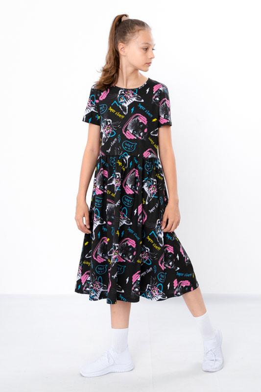 Полотно: кулир принтован Состав полотна: 100% хлопок Легкое летнее платье из принтованного кулира и длиной меди, обязательно понравится вашей девочке. Имеет короткий рукав и округлую горловину. Универсальный фасон, подойдет для повседневной носки. Отлично сочетается как с босоножками, так и с кроссовками или кедами.