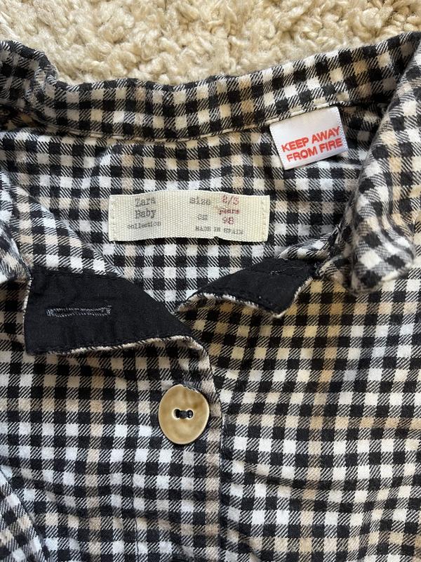 **Название:** Детское платье в клетку **Бренд:* Zara Baby **Размер:* 9-12 месяцев (80 см) **Цвет:* Черно-белый **Стан:* Отличное Предлагается стильное детское платье от бренда Zara Baby, выполненное из мягкой и приятной на ощупь ткани. Платье выполнено в черно-белую клетку, что придает ей особый шарм. Декорированная пуговицами спереди, имеет эластичную талию для удобной посадки. Идеально подходит для ежедневной носки или праздничных событий. **Особенности:** - Материал: 100% хлопок - Длинные рукава с манжетами - Удобная застежка на пуговицы - Легко стирать Не упустите возможность приобрести это прекрасное платье для вашей маленькой модницы!