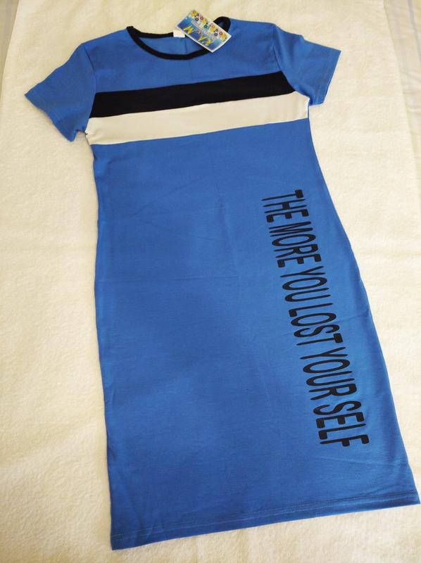 Платье для девочки, облегающего силуэта, выполнено из ткани стрейч-кулир (95% хлопок,5 эластан). Горловина оформлена округлым вырезом. На передняя часть нанесен рисунок, выполненный в технике шелкотрафаретной печати Длина платья до колена. Цвета: синий и кораловый. Размеры и замеры изделия: Размер 122: длина платья 62см, ширина по линии груди 31см; Размер 128: длина платья 66см, ширина по линии груди 32см; Размер 134: длина платья 70см, ширина по линии груди 33см; Размер 140: длина платья 75см, ширина по линии груди 34см; Размер 146: длина платья 80см, ширина по линии груди 36см; Размер 152: длина платья 85см, ширина по линии груди 38см; Размер 158: длина платья 90см, ширина по линии груди 40см;