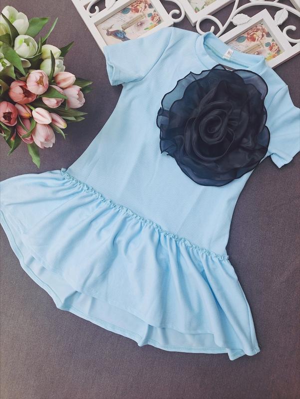 В НАЯВНОСТІ !!! ШВИДКА ВІДПРАВКА Дуже красива ніжна сукня💕💕💕💕👗 Прикрашена брошкою троянда. ✅️ Тканина: рубчик-жатка. Приємна до тіла. Аплікація пришита ✅️Колір: ніжно блакитний Заміри +-1-2см: 💖р134- дл.от плеча 64/+спинка 6см/ ПОГ 35см- 3шт 💖р.140- длина от плеча 66 см/ + спинка 6см/ ПОГ 37 см-3шт 💖р.146- длина от плеча 69 см/ + спинка 6см/ ПОГ 38 см-5 шт 💖р.152- длина от плеча 70 см/ + спинка 6см/ ПОГ 40 см-5шт 💖р.158- длина от плеча 74 см/ + спинка 7см/ ПОГ 42 см-4шт 💖р.164- длина от плеча 76 см/ + спинка 7см/ ПОГ 43 см- 4 шт