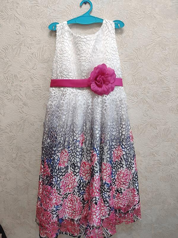 Продам нарядне плаття, стан нового, одягали всього кілька разів. Підкладка в кілька шарів, застібка - довгий потаємний замок Довжина 80 см Талія 32 см (додаткові розміри - останнє фото)