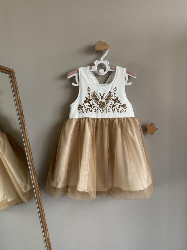 Нежное платье для девочек Размер/Цена 80 / 1рик - 650грн 86 / 1,5роки - 650грн 92 / 2роки - 750грн 98 / 3роки - 750грн 104 / 4роки - 750грн Тканина: Верх: коттон двойной Низ: котон двухнитка, зверху фатін Орнамент вышит нитками, после вышивки идет ткань чтобы нити не раздражали тело ребенка.