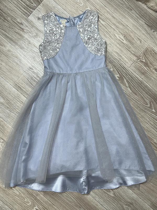 Плаття ніжно-блакитного кольору з блискучим напиленням і прикрасою з паєток Стан супер 🏷️Monsoon 12-13 років Довжина 68/100(33). ПОГ 39. ПОТ 36