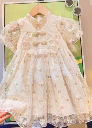 Невероятно стильное и нарядное платье 🔥 Снизу на хлопковой подкладке Невероятно красивые пуговицы -жемчужинки😍 Очень красиво сидит на ребенке Хорошее качество!Рекомендую ✅ 90 - длина 50 см, ширина 26 см (3 шт) 100- длина 55 см, ширина 27 см(4 шт) 110- длина 60 см, ширина 28 см (5 шт) 120- длина 68 см, ширина 31 см(7 шт) 130- длина 70 см, ширина 32 см(7 шт) 140- длина 74 см, ширина 33 см(5 шт)