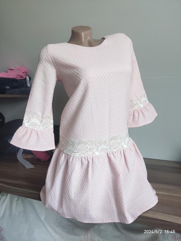 Страна производитель Украина, ТМ Мевис Новые, с биркой Рукава 3/4 Цвет - пудра (бледно-розовый) Не стрейч 164р. (42размер) Длина 84см По комди 44см Плечи 35см Рукава 47см