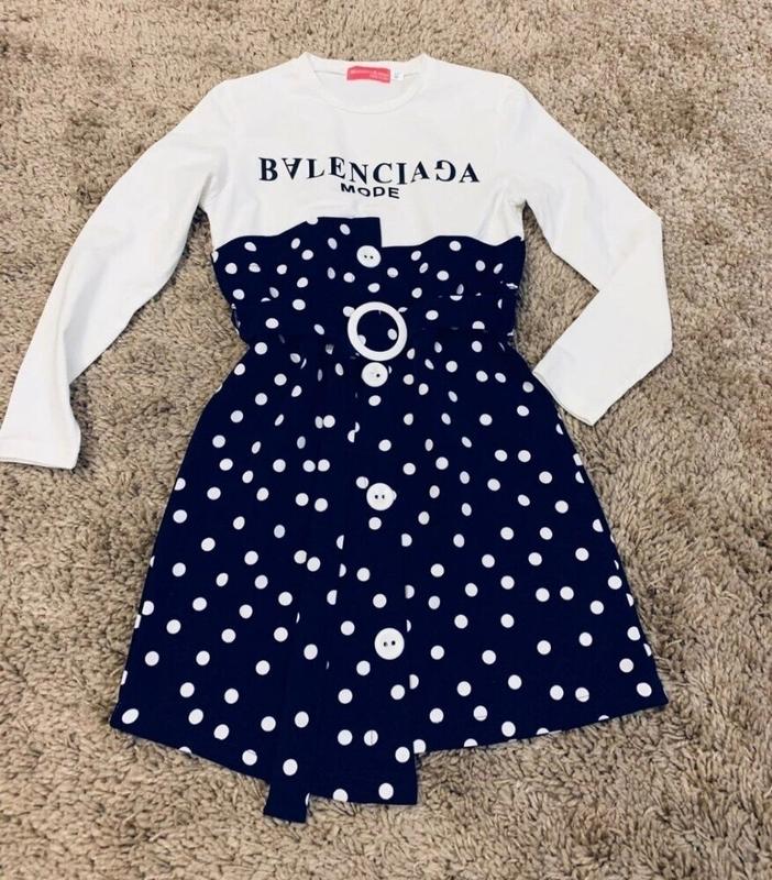 Стильное платье для девочки Трикотаж+ костюмка Размерная сетка: 152р длина 75 см. рукав 52 см. полуобхват груди 41 см.