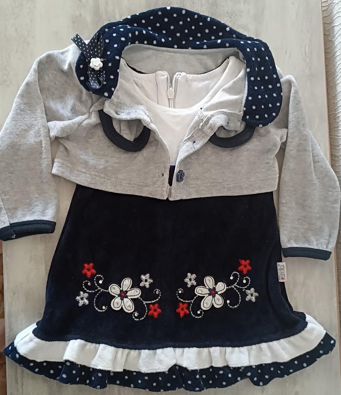 Костюмчик велюровый. В идеальном состоянии, одевался один раз на праздник. Платье-сарафан и болеро, укороченная кофточка подойдёт для любого праздника. Примерно на возраст от 6 мес до 1,5 года (2 года) . Цена 150 грн