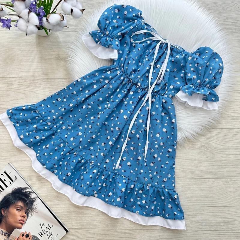 Трендовое летнее платье 🥰🥰🥰 🔝🔝🔝Цветочная, воздушная, стильная 🤩🤩🤩 Объемные рукава, на резиночке💕 Спереди вырез регулируется кулисками 👌🏻 В поясе резиночка😌 Тканина: софт 💗 Производитель: Украина 🇺🇦 ЗАМІРИ ⤵ +/- 1-2см!!! р.140- длина платья 69см/ рукав 29см/ ПОГ 31см р.146- длина платья 70см/ рукав 29см/ ПОГ 31см р.152- длина платья 73см/ рукав 31см/ ПОГ 33см р.158- длина платья 77см/ рукав 31см/ ПОГ 34см
