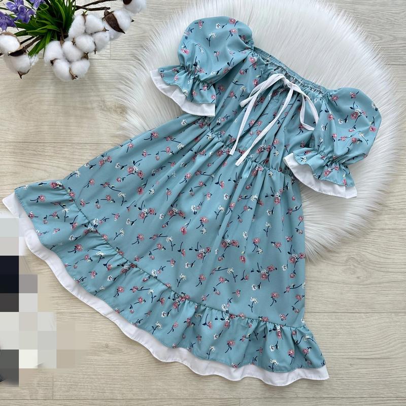 Таня Трендовое летнее платье 🥰🥰🥰 🔝🔝🔝Цветочная, воздушная, стильная 🤩🤩🤩 Объемные рукава, на резиночке💕 Спереди вырез регулируется кулисками 👌🏻 В поясе резиночка😌 Тканина: софт 💗 Производитель: Украина 🇺🇦 ЗАМІРИ ⤵ +/- 1-2см!!! р.134- длина платья 68см/ рукав 26см/ ПОГ 30см р.140- длина платья 69см/ рукав 29см/ ПОГ 31см р.152- длина платья 73см/ рукав 31см/ ПОГ 33см р.158- длина платья 77см/ рукав 31см/ ПОГ 34см