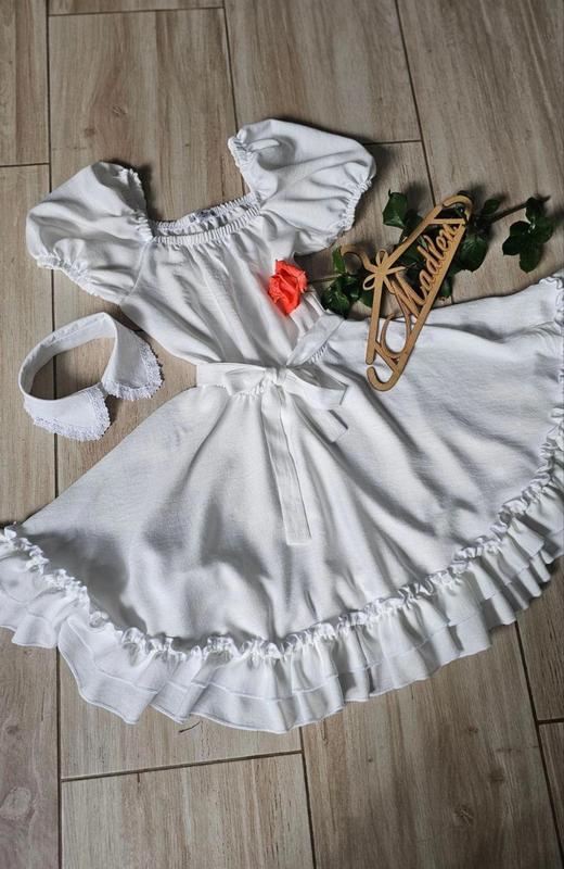 Платье праздничное с воротничком чокером Ткань-полилен. Замеры: 140 длина - 70см, полуобхват груди - 37см. 146 длина - 74см, полуобхват груди - 39см. 152 длина - 77см, полуобхват груди - 41см. 158 длина - 83см, полуобхват груди - 43см. 164 длина - 87см, полуобхват груди - 45см. Мс