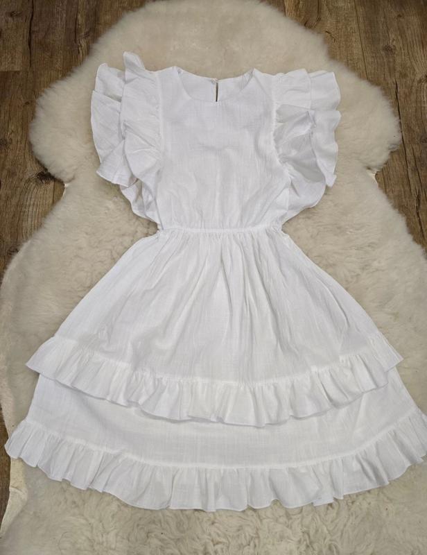 Очень стильная новиночка! Платье из натуральной ткани ( лён). Ткань очень приятная к телу - имеет тисненый дизайн. Замеры: 134 длина - 74см, полуобхват груди - 33см. 146 длина - 80см, полуобхват груди - 35см. 158 длина - 86см, полуобхват груди - 37см. Мс