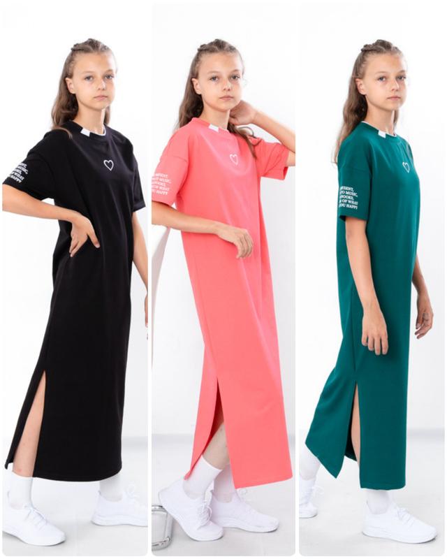 Полотно: двонитка однотонна Состав полотна: 80% хлопок, 20% полиэстер Базовое летнее платье для девушек-подростков длиной maxi пошитое из однотонной двухнити. Модель прямого силуэта с короткими рукавами, имеет небольшой разрез до колена. С переда и на рукаве нанесен небольшой принт в качестве декора. Полотно хорошего качества. Поэтому, при правильном уходе, платье можно будет носить не один сезон. После стирки может давать небольшую посадку.