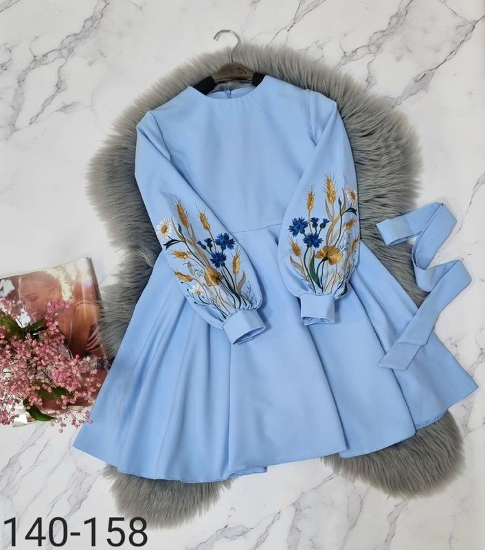 Нежное платье для девочки Тканина костюмка На рукавах настоящая вышивка Пояс в комплекті КАЧЕСТВО ЧУДОВА!!! РЕКОМЕНДУЮ!!! 💋152-длина 81,пог 39,рукав 53 💋158-длина 85,пог 40,рукав 54 +-2 см