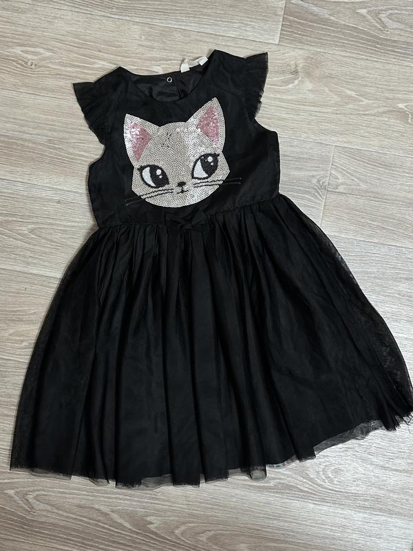Плаття чорне з котом із паєток Стан нового 🏷️H&M 9-10 років/140 Довжина 79(29). ПОГ 37