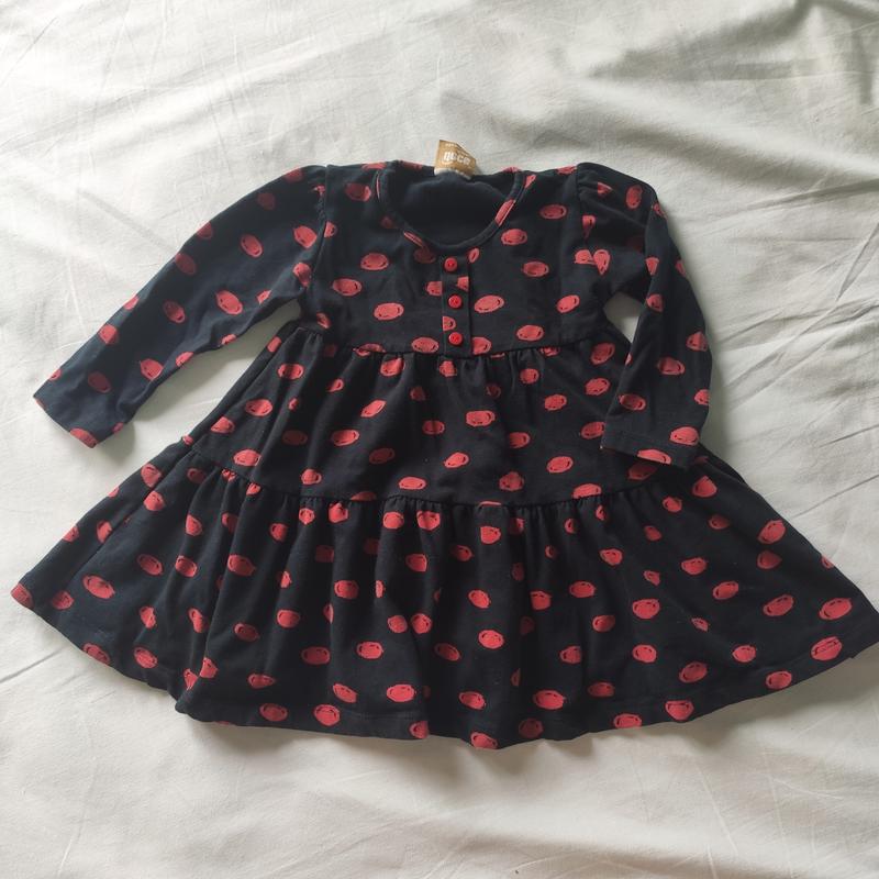 Легкое коттоновое платье свободного кроя. Темная с красным горошком. Красиво садится на ребенке, без нюансов. Размер: 92 см / 2-3 года