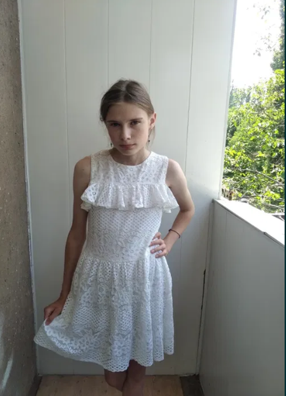 Красивое платье нежное, кружевное, молочного цвета. Есть подкладка. Состояние хорошее. На фото ребенок 13 лет Рост 160 см