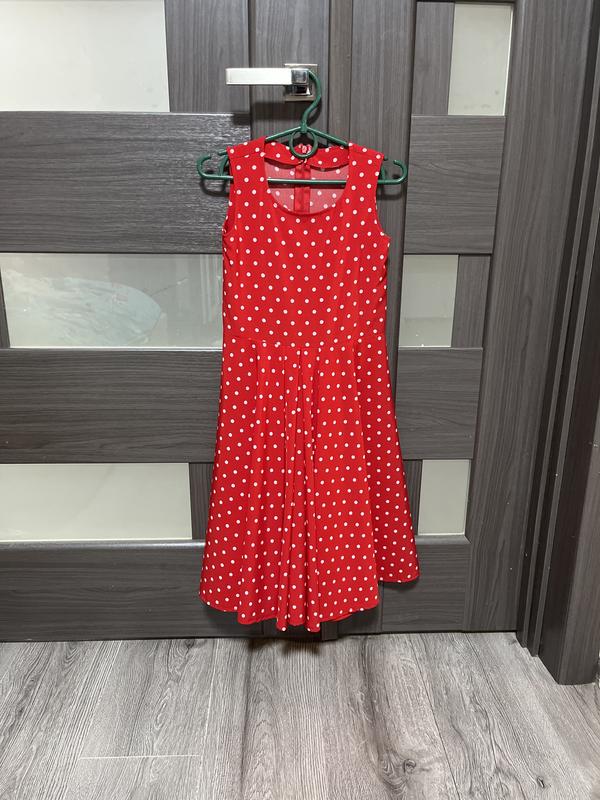 Красное платье в горошек с вместе с подъюбником