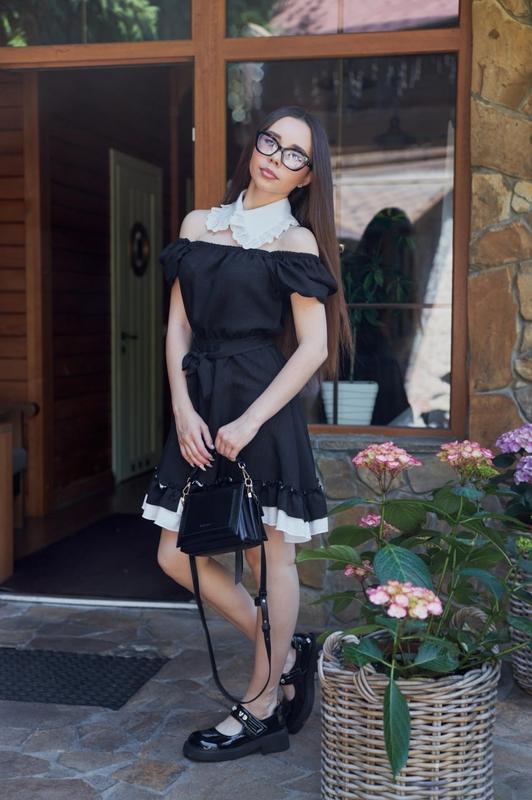 Платье праздничное с воротничком чокером Ткань-полилен очень приятная на ощупь сверхвозможенняйно пышная юбочка в талии под резинку и поясок Рекомендую рост/длина от плеча/пог похибка+-2см 140-146/71/37 152-158/78/41 158-164/83/43 164-170/88/45