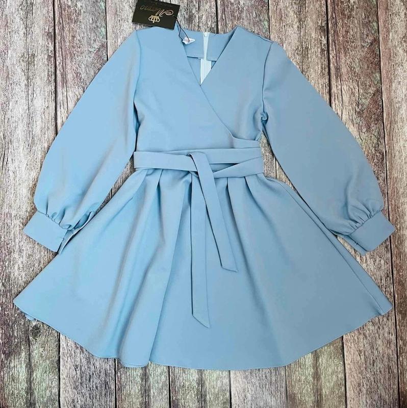 Стильное платье для модниц По спинке к поясу застегивается на молнию. Спереду на запах. Пояс в комплекте. Тканина- костюмна. Замеры: 158 длина - 83см, рукав ид плеча - 58см, полуобхват груди - 44см 164 длина - 87см, рукав ид плеча - 63см, полуобхват груди - 45см