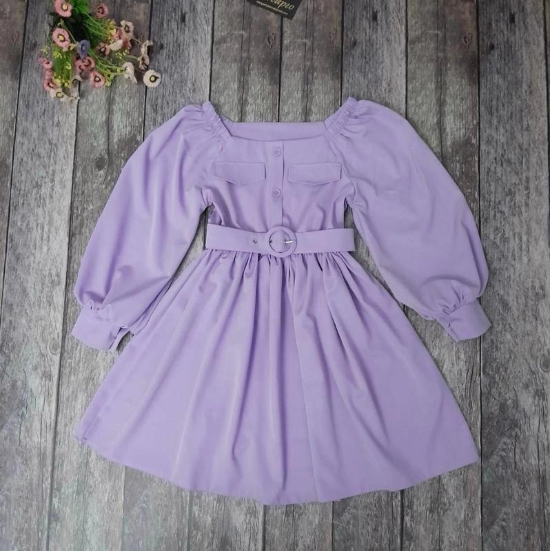 Стильное платье для модниц По переду пуговицы декоративные. Поясок в комплекте. Тканина- костюмна. Замеры: 140 длина - 68см, рукав - 52см, полуобхват груди - 34см 146 длина - 74см, рукав - 55см, полуобхват груди - 36см 158 длина - 82см, рукав - 64см, полуобхват груди - 42см