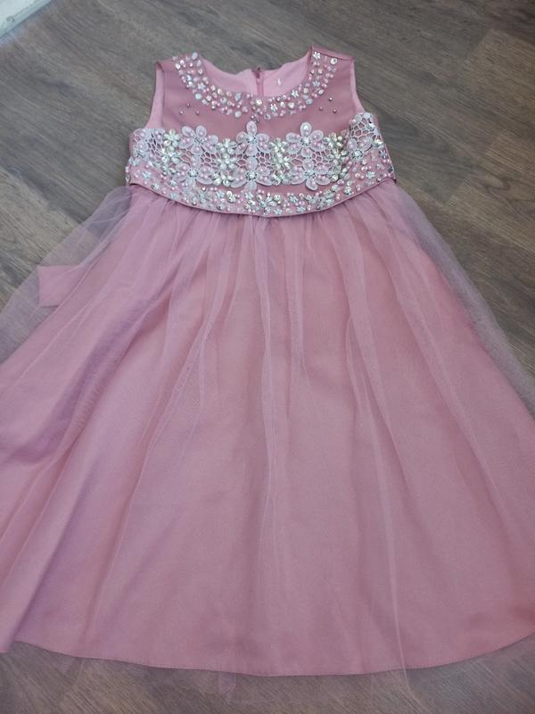 Платье на 9-11 лет, длина 79-85 см, по талии 33 си, от плеча до пояса 28 см, верх вишитий стразами та бусинами