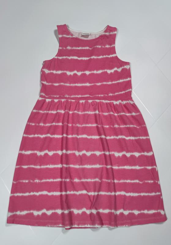 Сарафан для девочки 11-12 лет Lefties. Стильный принт. Верх выполнен в виде маечки. В районе талии на резинке. Легкий и приятный к телу. Стан идеален. 100% бавовна. Размер по набору 11-12 лет (152) Замеры: НОГ - 35 см Длина по спинке - 75 см Хорошо тянется