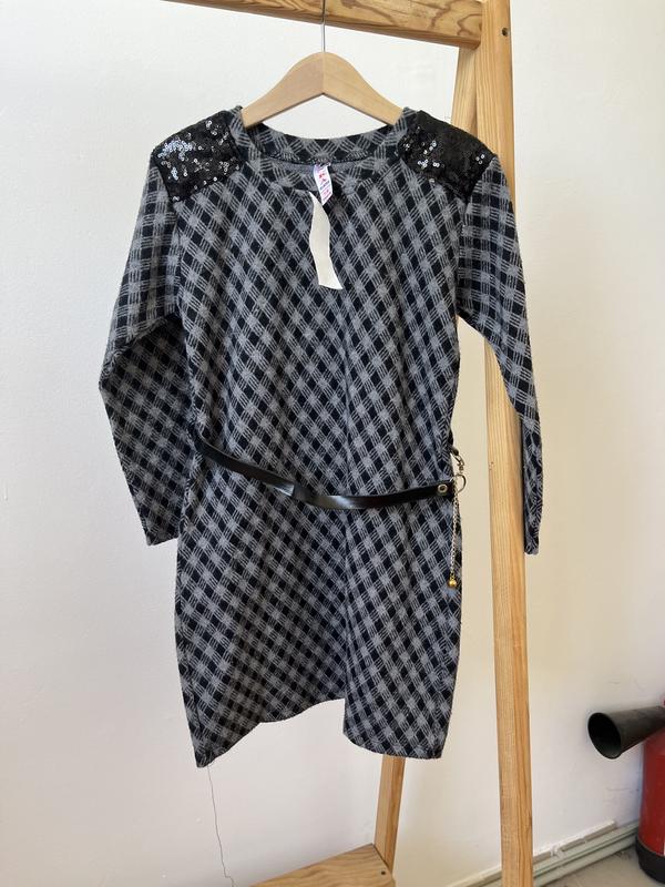 Детское утепленное платье туника серое теплое платье для девочки 7 8 лет